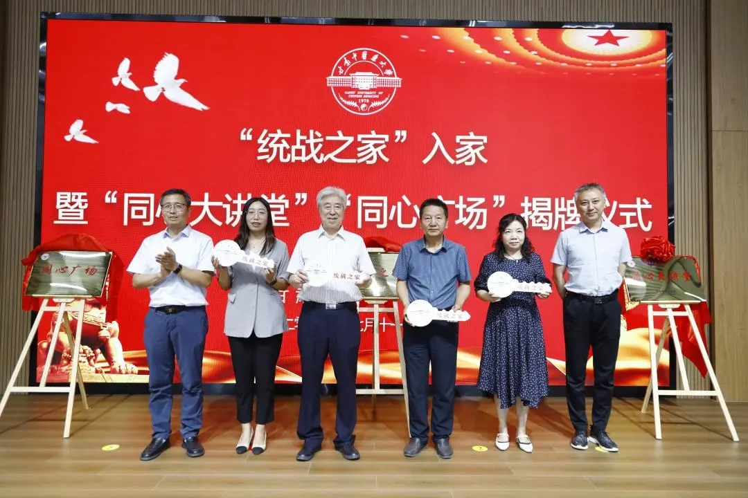 7月11日,甘肃中医药大学在和平校区大学生活动中心一楼同心大讲堂举办“统战之家”入家暨“同心大讲堂”“同心广场”揭牌仪式。民革甘肃中医药大学支部全体党员参加仪式。