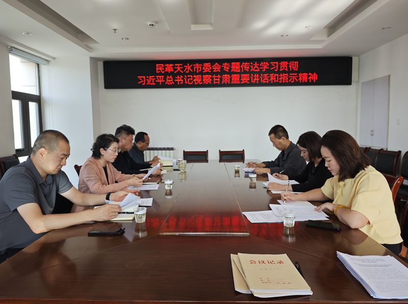 9月25日,民革天水市委会召开八届十一次常委会议专题传达学习贯彻习近平总书记视察甘肃重要讲话和指示精神,市委会主委主持会议,副主委、常委参加会议。