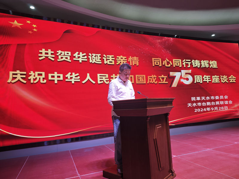 座谈会上,市台联副会长和市民革专职副主委分别致辞,向出席座谈活动的台胞台属代表和民革党员致以节日的问候和美好的祝愿,对广大台胞台属、民革党员长期以来为推动天水经济社会发展、促进两岸关系和平发展和祖国统一做出的积极贡献表示感谢。并表示将坚持以习近平新时代中国特色社会主义思想为指导,认真贯彻落实党的二十大和二十届二中、三中全会精神,习近平总书记视察甘肃重要讲话和指示精神,深刻领悟“两个确立”的决定性意义,增强“四个意识”、坚定“四个自信”、做到“两个维护”,继续加强思想引领,广泛凝聚共识,勇担时代重任,以一往无前的闯劲、百折不挠的韧劲、只争朝夕的干劲,全力推动天水经济社会高质量发展。