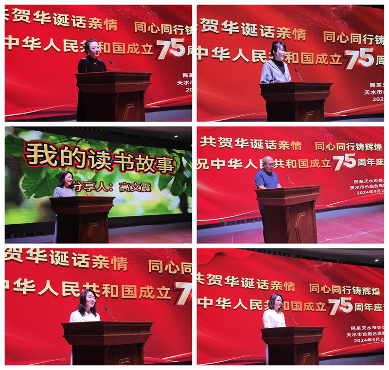 会上,来自各基层组织的10名党员分别结合自己工作、学习见闻,就所想、所思、所感、所做进行了分享交流,重温了民革先辈与中国共产党风雨同舟、肝胆相照的革命历程,深切表达了民革人炽热的家国情怀和对祖国七十五华诞的深情祝福。读书分享环节,党员们用文字的力量和声音的魅力,就如何传承和弘扬中华优秀传统文化、如何学以致用加强自身修养等方面,分享了读书体会和人生感悟,号召大家要时刻牢记作为一名新时代民革党员的担当和使命。文艺演出更是气氛热烈、精彩纷呈,参演人员以配乐诗朗诵、器乐合奏、歌曲独唱、情景剧等形式,共同礼赞中华人民共和国成立75年来取得的伟大成就。