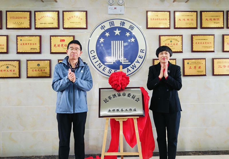 10月16日,民革酒泉市委员会法律服务工作站在酒泉阳关律师事务所揭牌成立。酒泉市人民政府副市长、民革酒泉市委员会主委靳巧荣,中共酒泉市委统战部副部长龚云出席活动并为工作站揭牌,民革酒泉市委会专职副主委蒋永主持揭牌仪式。
