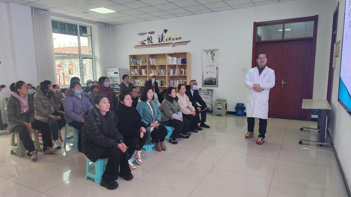 民革八冶支部主委王振涛以“冬季养生”为主题对社区居民进行了健康知识宣讲,利用通俗易懂的语言向居民详细讲解了冬季健康生活方式及注意事项。医护人员耐心地为社区群众量血压,看病历,解答他们提出的问题,详细了解他们的身体健康状况,并暖心给予医疗建议,同时告知他们如何正确服用药物。