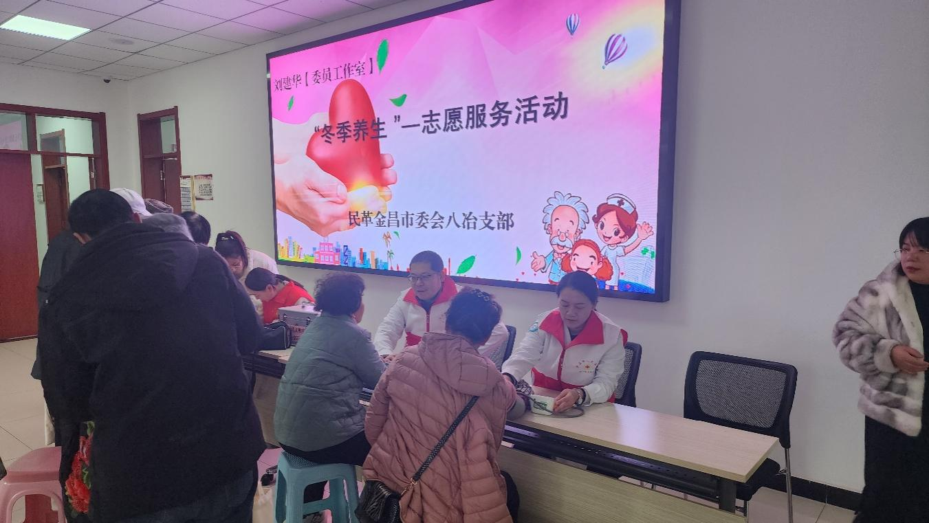 11月29日,民革金昌市八冶支部的部分医护人员前往金川区昌福里社区开展“健康讲座进社区 冬季义诊暖人心”志愿服务活动,向社区居民进行健康知识宣讲和义诊。市委会专职副主委刘建华参加活动。