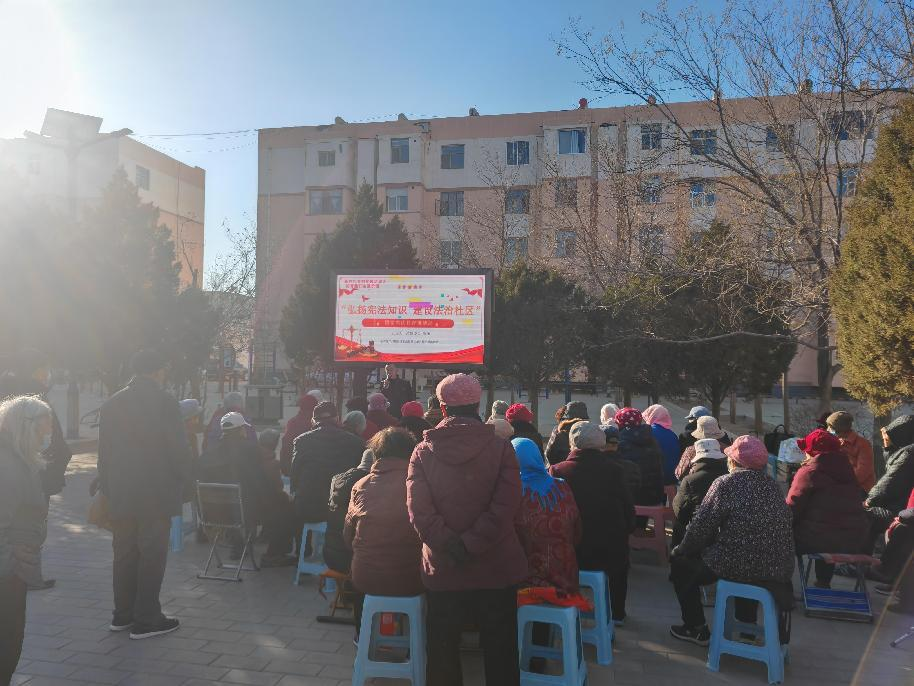 宪法宣传日当天,金川区政协委员、桂林路法律服务所主任、民革党员斯钰为宝林里社区居民以“弘扬宪法知识,建设法治社区”为主题作普法宣讲。