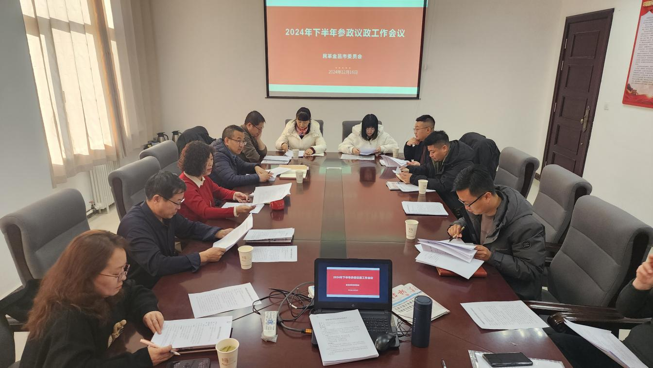 12月16日,民革金昌市委会召开2024年下半年参政议政工作会议。会议由民革金昌市委会参政议政委员会主任李燚主持,市委会副主委刘建华、张岁虎参加会议。会议传达学习了民革十四届三中全会精神,总结了市委会全年的参政议政工作,对拟提交市政协九届四次会议的21件提案进行了逐一审核讨论。市委会机关人员及参政议政委员会全体成员参加了本次会议。