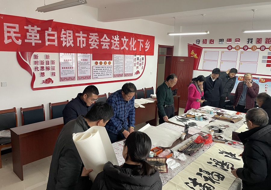 12月23日,正值新年来临之际,白银市政协副主席、民革白银市委会主委顾克伟带领杨爱玲、邢富平、孙永刚、胡进程等民革党员书画家、骨干党员、机关干部,社会联系书画家人士王福静、胡登峰,社会联系企业家万永青等赴会宁县土门岘镇,开展文化下乡惠民活动。