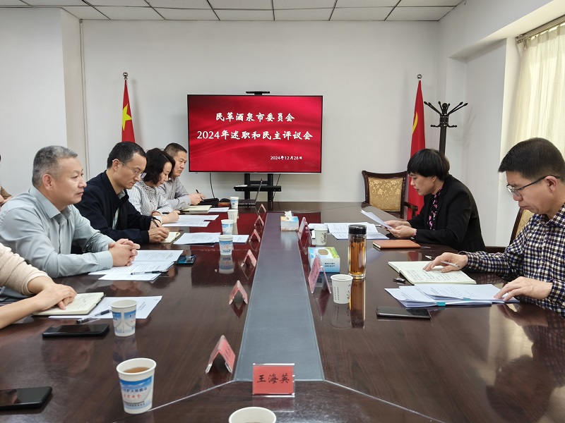 为进一步规范班子管理,推进班子自身建设。12月28日,民革酒泉市委员会召开2024年领导班子述职和民主评议会。酒泉市人民政府副市长、市委会主委靳巧荣主持会议。中共酒泉市委统战部副部长龚云应邀指导会议,民革市委会委员参加会议,市委会监督委员会委员列席会议。