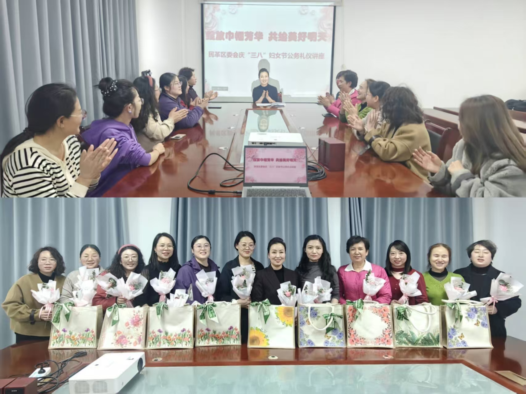 座谈会后,邀请妇联有关专家,开展了民革区委会纪念“三八”妇女节公务礼仪主题讲座和手工贴花比赛。主题讲座围绕女性公务着装、化妆、礼仪等基本知识,针对性引导女党员保持良好的形象,树立正确的工作信念和健康生活的理念,为巾帼干事创业鼓劲加油。贴花活动主要目的是联络感情增进友谊,到会女党员积极动手动脑,现场气氛活跃,大家在活动拉进交流距离,传递美好和祝愿。