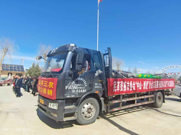 3月29日,由民革张掖市委会“中山·博爱”社会志愿服务团农业专家组成员,张掖市农科院玉米研究所所长、研究员缪纯庆,张掖市开心格林种业集团总经理顾万东带队,到高台县骆驼城乡前进村,开展中山·博爱”助力乡村振兴送农资下乡社会服务活动。