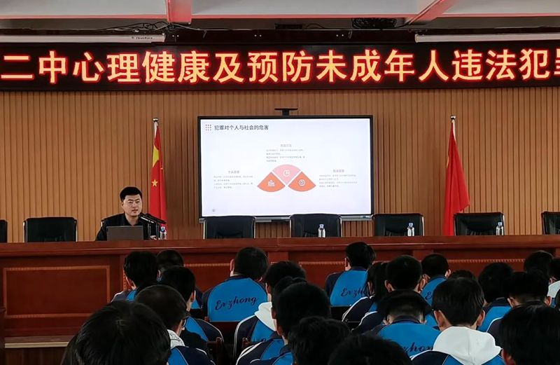 活动中,张凯律师通过“讲解+互动”模式让学生深刻认识到遵守法律和促进心理健康的重要性。从未成年人犯罪现状与危害、法律知识普及、预防措施等多方面,结合未成年人案件实例,以案说法,深入浅出地详细阐释了违法犯罪的危害,引导同学们要遵纪守法,运用法律武器保护自身合法权益。