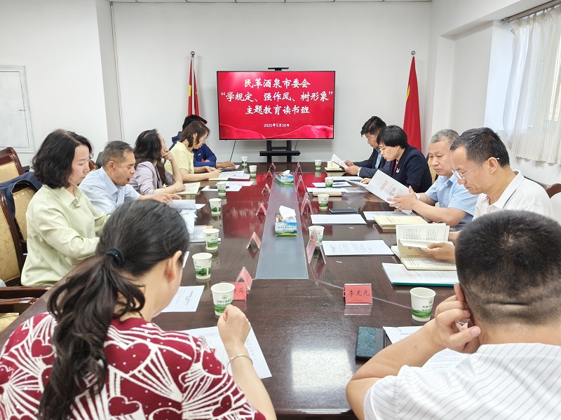 为深入落实民革中央和省委会“学规定、强作风、树形象”主题教育动员部署会精神,推动主题教育走深走实。5月30日,民革酒泉市委会举办“学规定、强作风、树形象”主题教育读书班第一期。酒泉市人民政府副市长、民革酒泉市委会主委靳巧荣主持学习并讲话。民革酒泉市第四届委员会班子成员参加读书班。