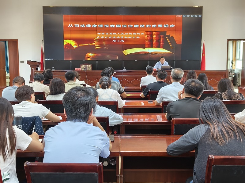 6月7日,甘肃省高级人民法院副院长、民革甘肃省委会负责日常工作的专职副主委席小鸿受邀赴酒泉市,为酒泉民革党员开展法治建设专题辅导。酒泉市人民政府副市长、民革酒泉市委会主委靳巧荣主持讲座。