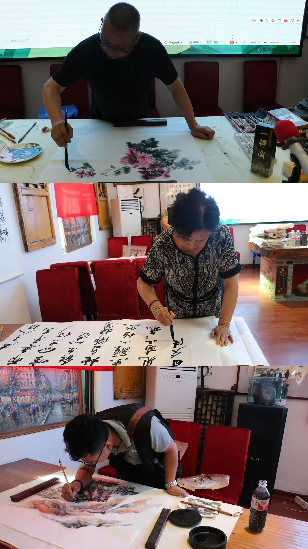 在民革兰州文化支部党员之家,民革兰州画院书画家挥毫泼墨,各展风采,用浓墨重彩描绘壮美山河,用妙笔生辉书写盛世风采,一幅幅苍劲有力的书法作品、生动巧妙的水墨画作抒发了对祖国的美好祝福,用作品表达了坚定跟党走的信心和决心。