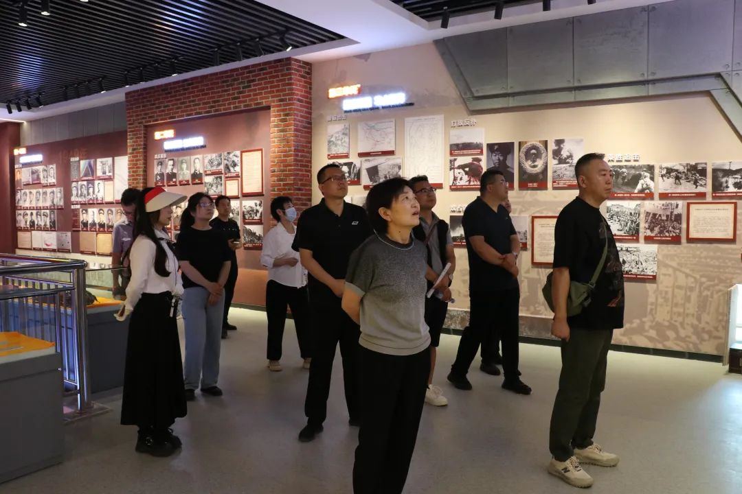 在讲解员的带领下,大家参观了遗址内陈列的珍贵历史照片、文物及场景复原展区。每一件展品都诉说着那段波澜壮阔的革命岁月,每一段文字都记录着革命先烈们英勇无畏、浴血奋战的伟大精神。大家不时驻足凝视,相互交流感悟,共同追忆那段峥嵘岁月。参观后,大家向革命先烈敬献花篮,整理缎带,鞠躬默哀。