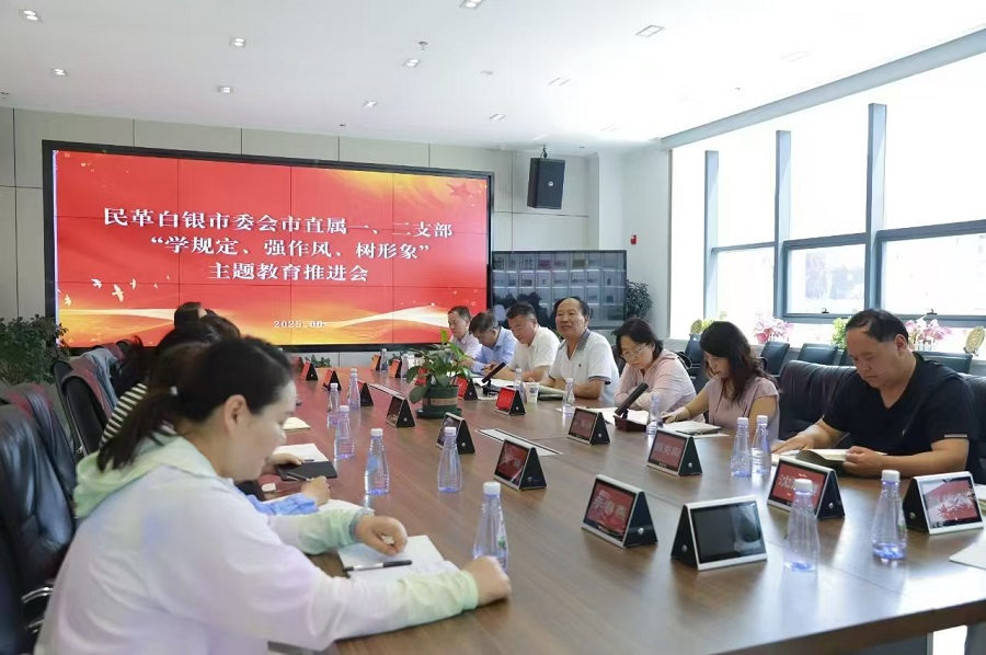 近日,民革白银市委会市直属第一、第二支部联合召开“学规定,强作风,树形象”主题教育推进会。民革白银市委会主委、白银市政协副主席顾克伟出席会议并讲话。市直属第一支部主委张乾栋、第二支部主委李春丽和两个支部的党员代表21人参加会议。