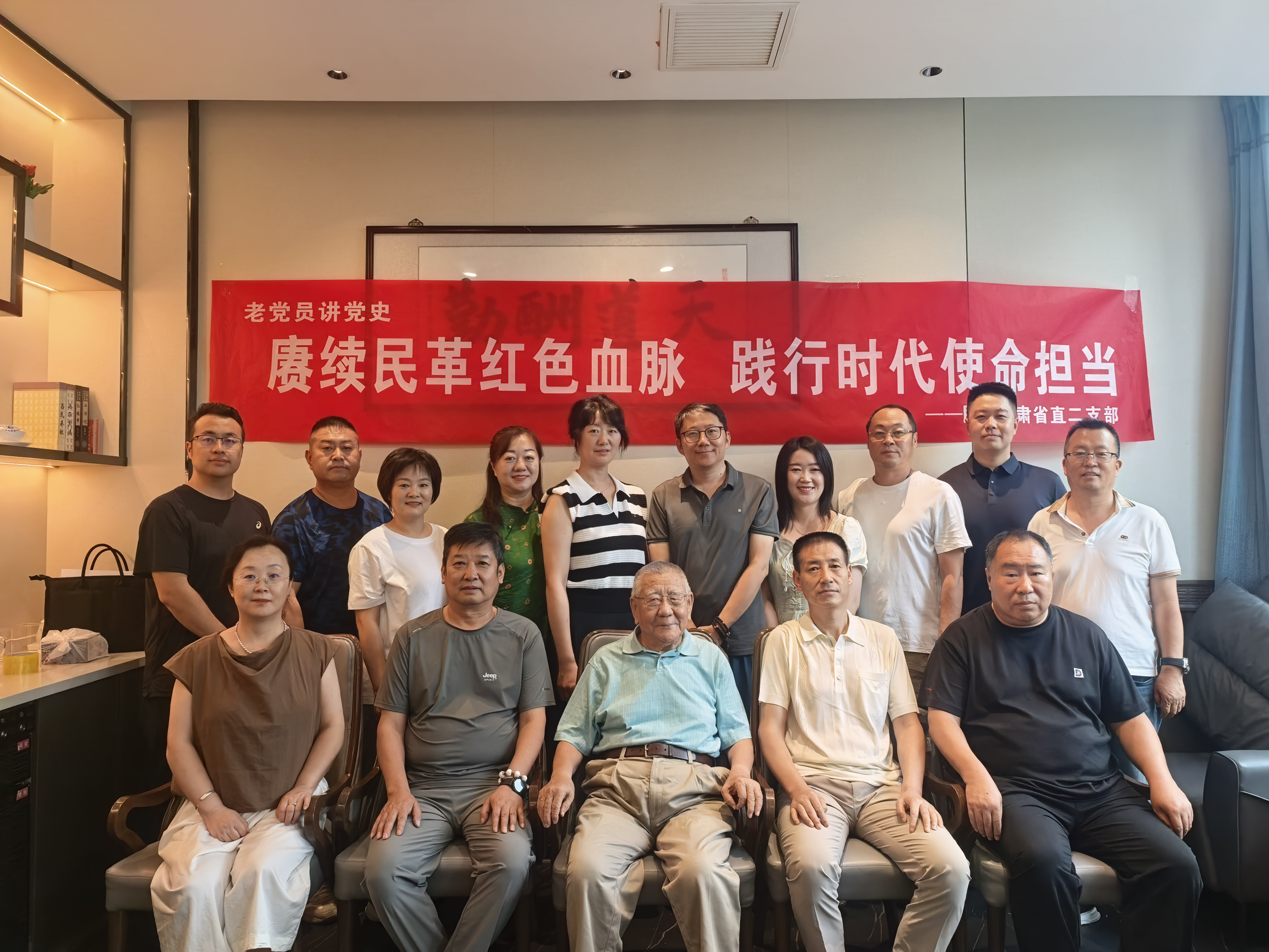 8月1日,民革甘肃省委会直属二支部开展“老党员讲党史——赓续民革红色血脉,践行时代使命担当”主题活动。活动特别邀请年近九旬的老党员于宗礼分享支部历史与初心传承,支部20余名党员参加学习活动。