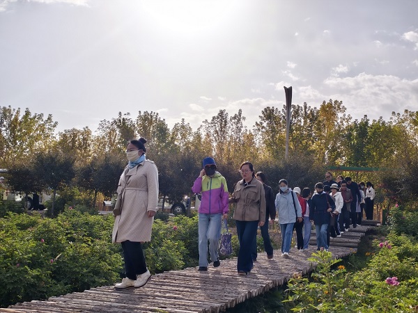 实地观摩环节让党员们近距离感受生态文明建设的“甘州实践”。在黑河林场工作人员的引导下,党员们沿着生态步道察看林木养护、湿地保护等情况,详细了解林场在防风固沙、改善区域生态环境、推动绿色发展等方面的举措与成效。