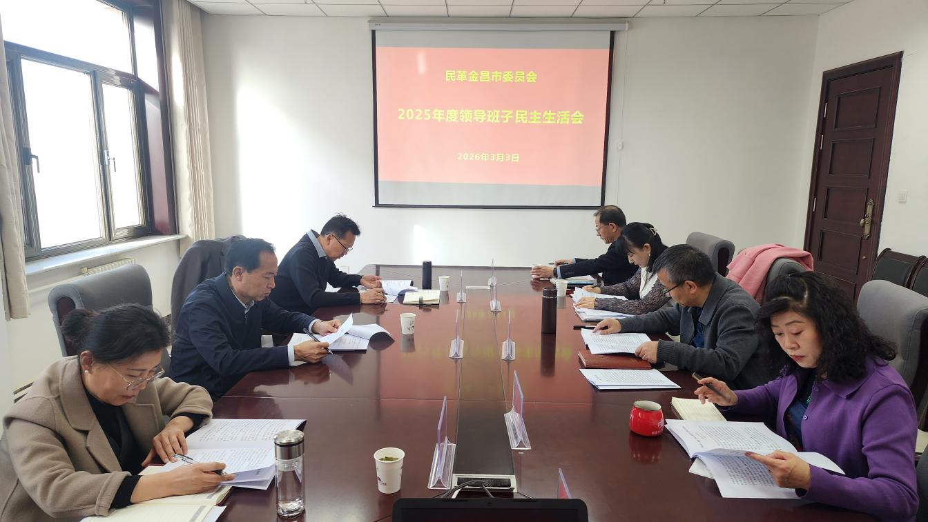 3月3日,民革金昌市委会召开2025年度领导班子民主生活会。市政协副主席、民革金昌市委会主委姜玉成主持会议,市委统战部副部长杨江山、市纪委监委派驻市人大机关纪检监察组组副组长赵晓燕应邀到会指导。