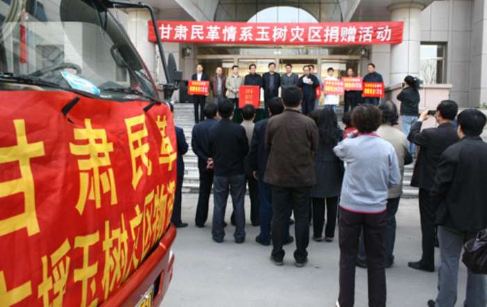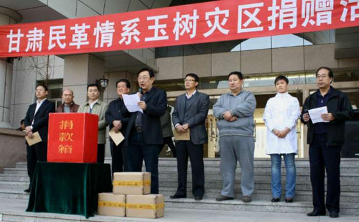 4月24日,民革甘肃省委会“情系玉树灾区”捐赠活动在省委会机关启动。中共甘肃省委统战部副部长张文学、民革甘肃省委会主委郭层城在捐赠仪式上讲话。原甘肃省政协副主席、民革甘肃省委会主委俞正出席捐赠仪式。