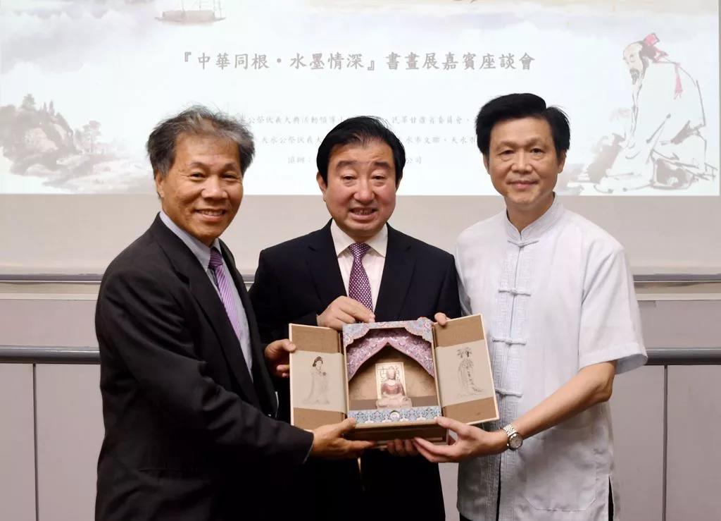 霍卫平向台湾标准草书协会赠送《古韵敦煌》手工书