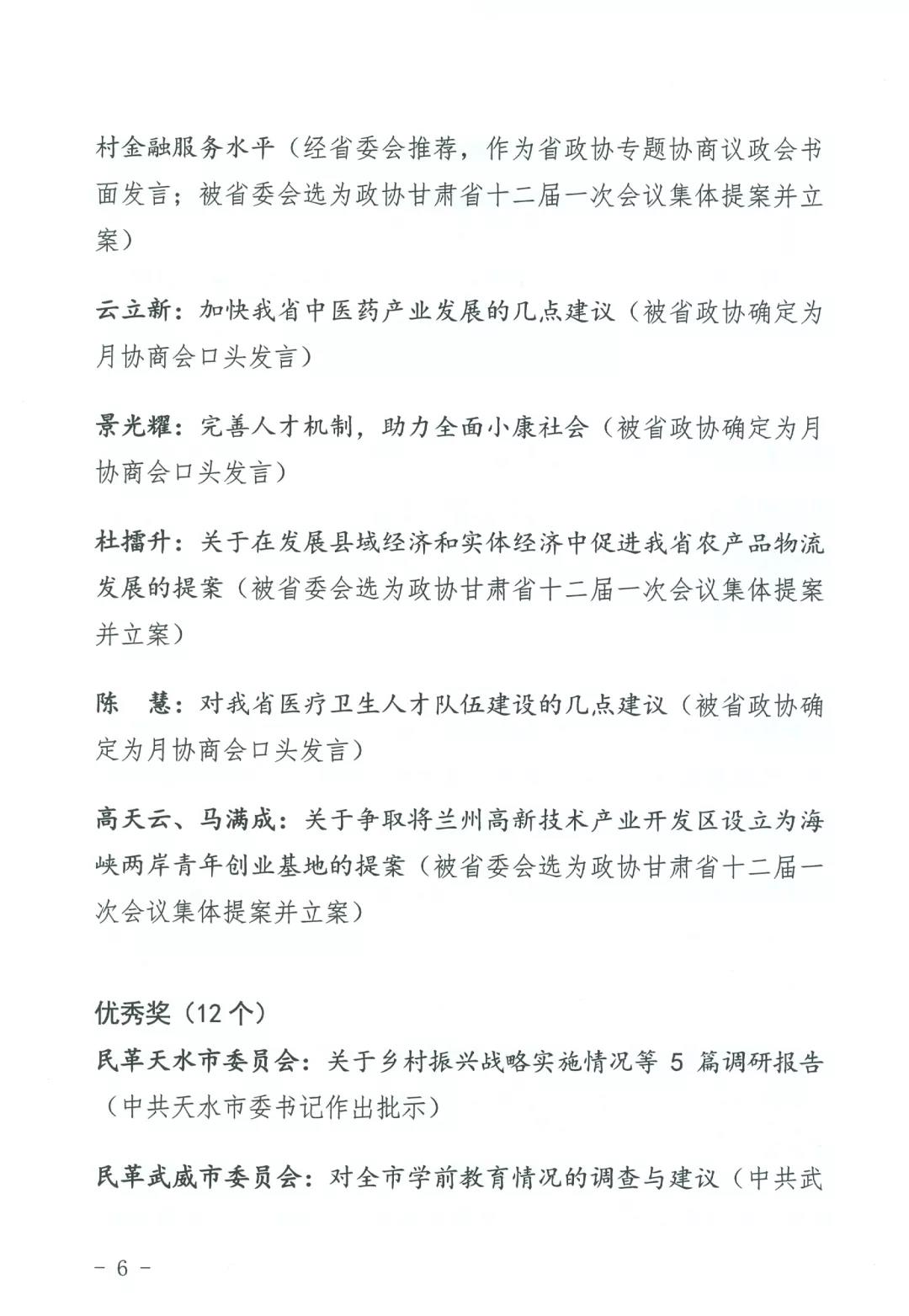 民革酒泉市委会主委靳巧荣、民革张掖市委会副主委张兴锋、民革兰州市委会副主委杜擂升,代表获奖的先进集体和先进个人,围绕如何做好参政议政工作,作了交流发言。