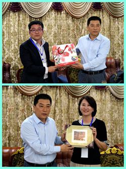 万泽刚与参访团团长徐弘庭、副团长王鸿薇互赠礼品