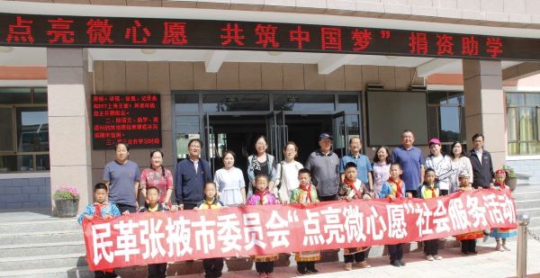 7月10日,民革张掖市委会在肃南县红湾小学组织开展了“点亮微心愿”爱心捐助社会服务活动。民革张掖市委会副主委张兴锋、朱虎、代海霞及来自民革张掖市直属支部及民革张掖市凉州区委会的党员代表共11人参加了捐助活动。