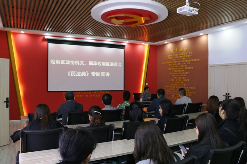 民革崆峒区委会向广成路社区捐赠《民法典》50册,并邀请相关律师为社区干部职工作了《民法典》专题宣讲。