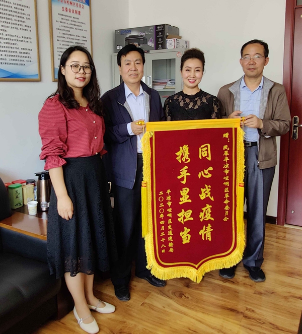 9月7日,平凉市崆峒区交通运输局相关领导来到民革平凉市崆峒区委会机关,送来“同心战疫情,携手显担当”锦旗一面,并对民革平凉市崆峒区委会在抗击新冠肺炎疫情期间的积极捐赠和支持表示感谢。