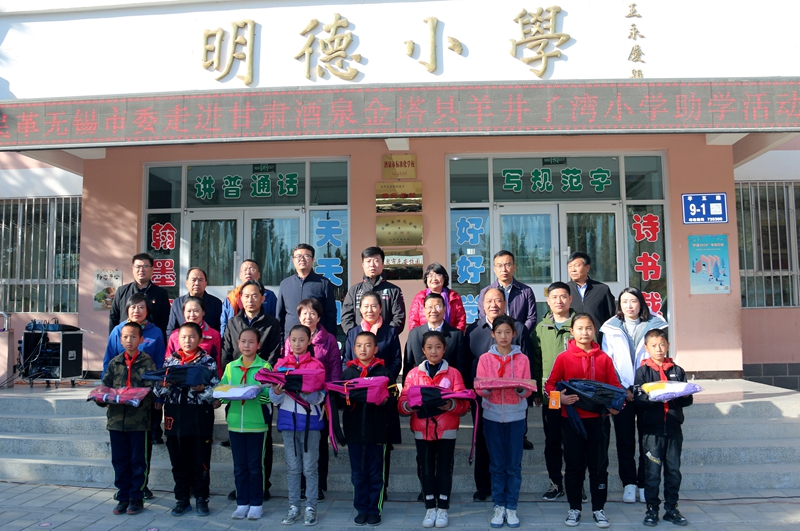 在酒泉市金塔县羊井子湾乡学区举行的捐赠仪式上,民革无锡市委会和无锡市民革党员中的爱心企业家向学区学生捐赠了书包、图书、文具、校服、羽绒服等学习用品和生活用品,总价值约6万多元。张丽霞表示,作为民革友好结对市委会,民革无锡市委会将一如既往地组织发动无锡市的民革党员,为酒泉巩固脱贫攻坚成果、推动酒泉农村地区教育事业发展奉献爱心、贡献力量。