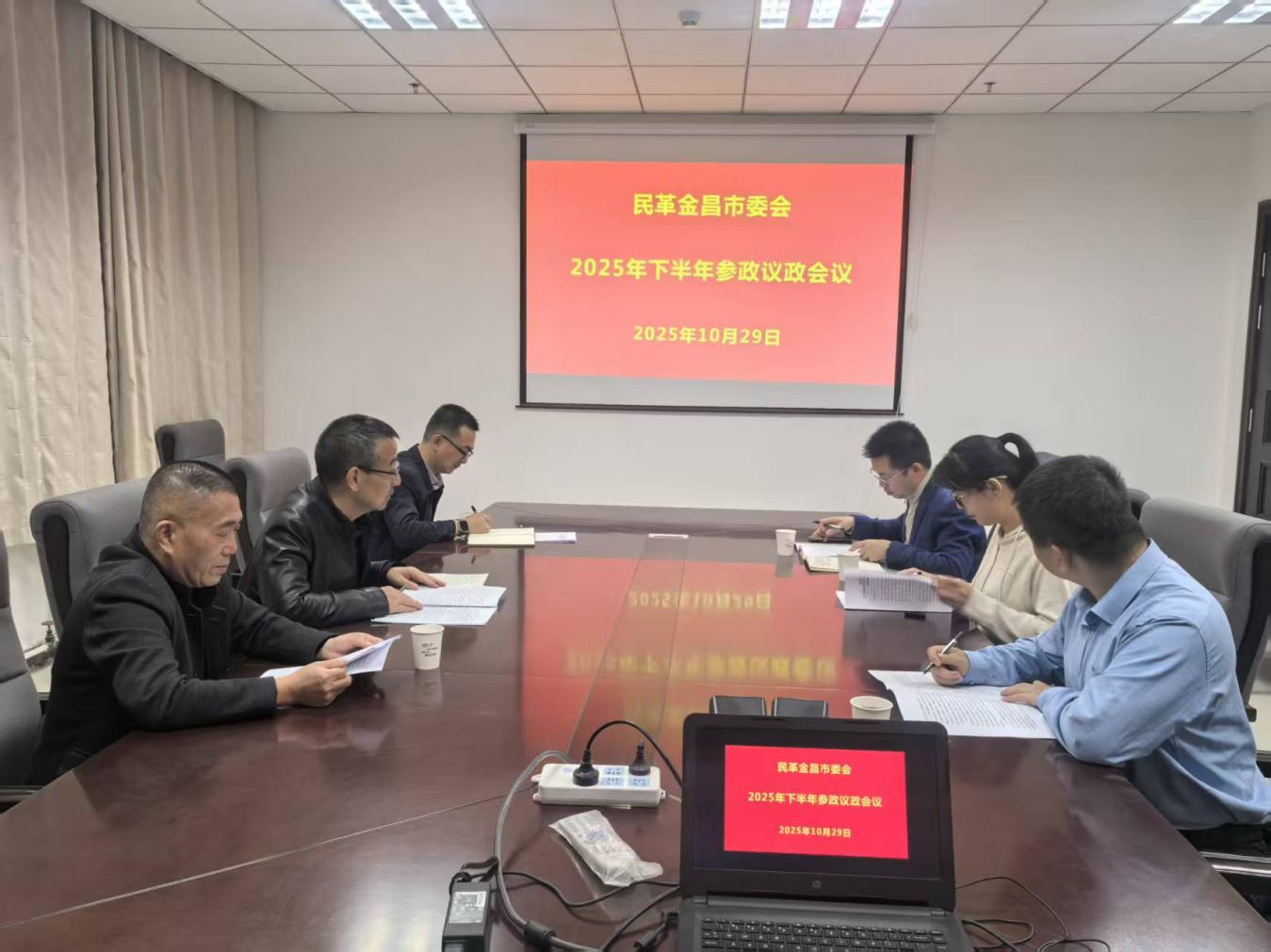 10月29日,民革金昌市委会召开2025年下半年参政议政工作会议。会议由民革金昌市委会专职副主委张岁虎主持。会议总结了市委会2025年的参政议政工作,对2025年政党协商课题“承接中东部产业转移促进有色金属产业发展”调研报告初稿进行了集体讨论,对因事不能参会的委员书面征求了意见。