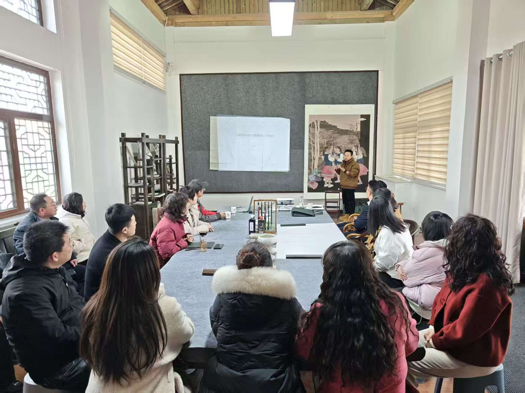 为深入学习贯彻习近平文化思想,弘扬中华优秀传统文化,11月16日,民革嘉峪关市委会联合市美术馆在民革嘉峪关中山书画院共同举办“主题性美术创作的图像叙事与形象建构”公益交流活动。来自全市的近30名民革党员、中山书画院成员及书画爱好者参加活动。