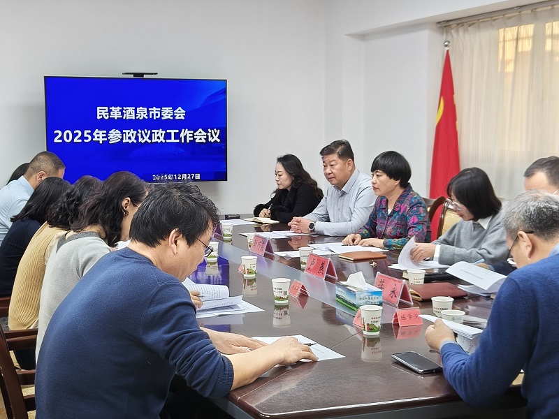 12月27日,民革酒泉市委会召开2025年参政议政工作会议。酒泉市人民政府副市长、市委会主委靳巧荣主持会议并讲话。市委会委员、民革界别市政协委员参加会议。