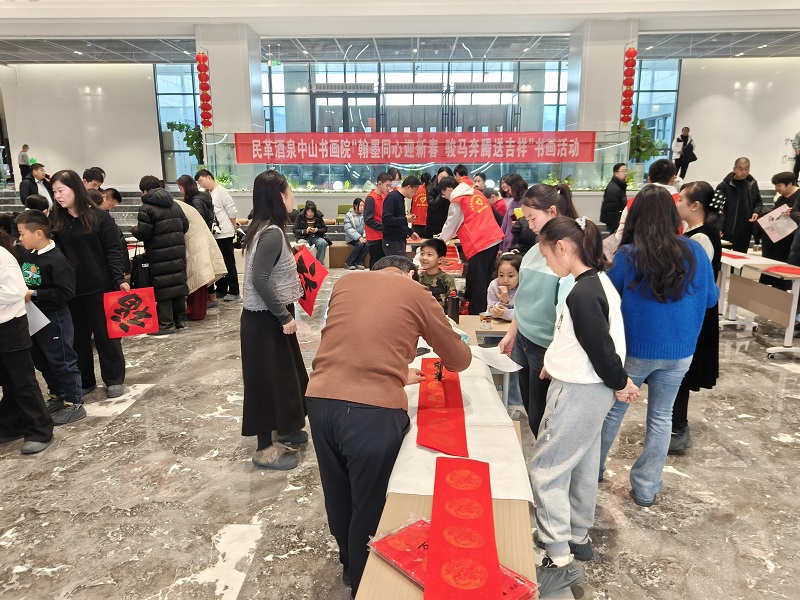 1月24日,民革酒泉中山书画院走进酒泉市丝绸之路文化研究中心(酒泉市图书馆)开展“翰墨同心迎新春 骏马奔腾送吉祥”书画活动。民革酒泉市委会副主委卢燕、党立文、王伟、蒋永出席活动。