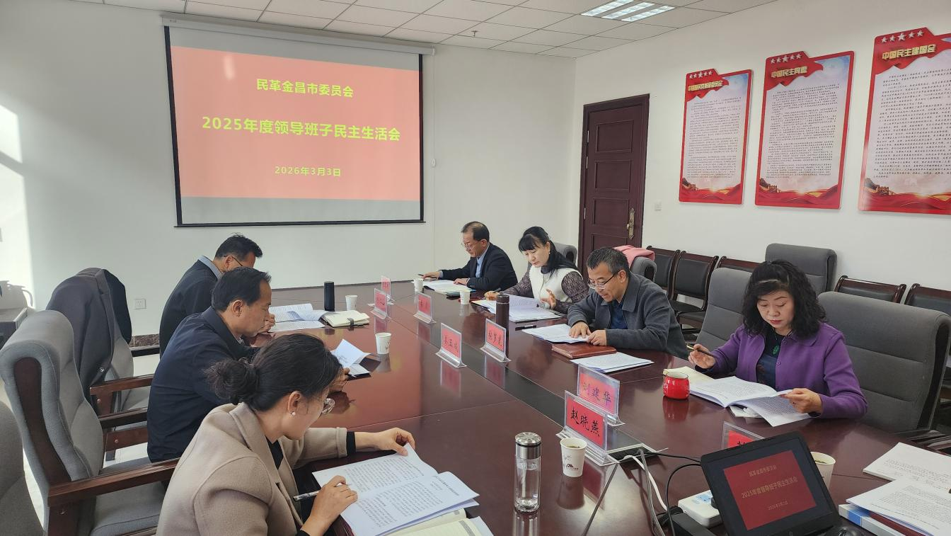 3月3日,民革金昌市委会召开2025年度领导班子民主生活会。市政协副主席、民革金昌市委会主委姜玉成主持会议,市委统战部副部长杨江山、市纪委监委派驻市人大机关纪检监察组组副组长赵晓燕应邀到会指导。