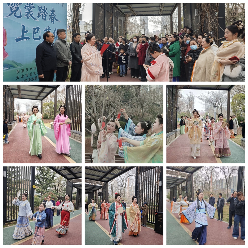 3月7日上午,为庆祝第116个“三八”国际劳动妇女节,弘扬中华优秀传统文化,丰富女党员精神文化生活民革天水市委会在弘文园精心组织开展了“霓裳踏春 上巳芳华”主题活动。全市40余名党员欢聚一堂,通过汉服展示、翰墨赠扇、传统游艺等环节,共赴一场穿越千年的春日之约。